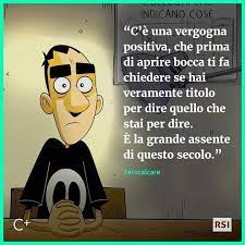 Lo spunto di questa riflessione viene dalle parole di Zerocalcare, che prima di oggi non ho mai degnato della minima attenzione - l'ho sempre ritenuto un prodotto del mainstream più spinto dietro la patina di trasgressività - che ci fa sapere, in una vignetta, naturalmente già diffusa da tutti gli eunuchi del pensiero unico, che "c'è una vergogna positiva che prima di aprire bocca ti fa chiedere se hai veramente titolo per dire quello che stai per dire" aggiungendo poi, per finire il suo delirio reazionario, che "è la grande assente di questo secolo".