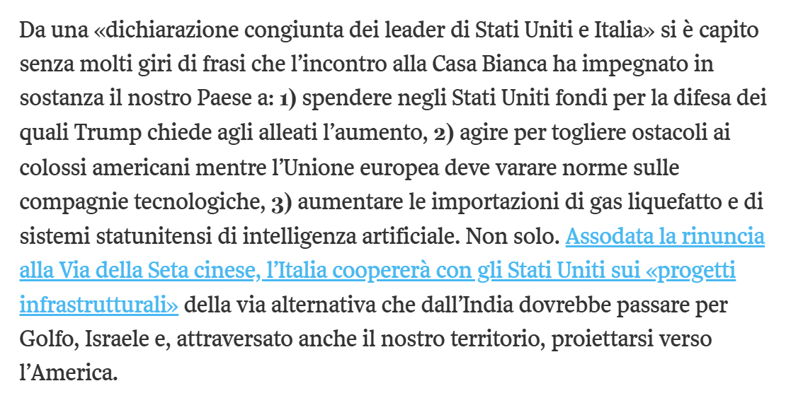 Avete passato gli ultimi quattro anni a ripetere che l'Egemone è in declino e che essere nemici degli americani è pericoloso, essere amici è letale. Ora volete continuare a mettervi in casa "amici" del genere, infidi e in declino. Porca troia, ma quanto siete ritardati!? 🤣 😅