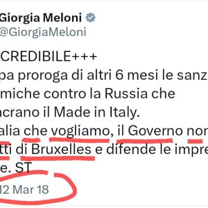 • La destra conservatrice e fascistoide raggrumatasi attorno a Giorgia Meloni si crede, nei suoi sogni megalomani, erede dell’Impero romano o del...