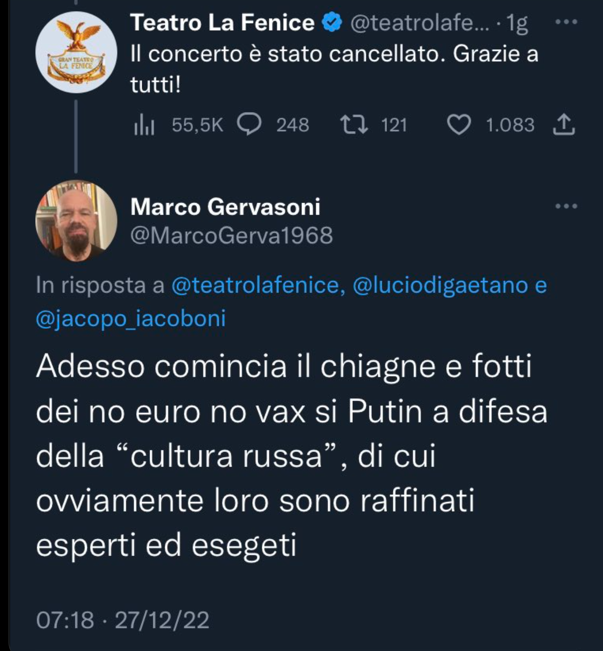 Anche l'impostore Gervasoni si diede al chiagni e fotti di prammatica quando la LUISS lo caccio' a calci in culo con l'accusa di "sovranismo". Contato, pesato e diviso. Originally posted in: