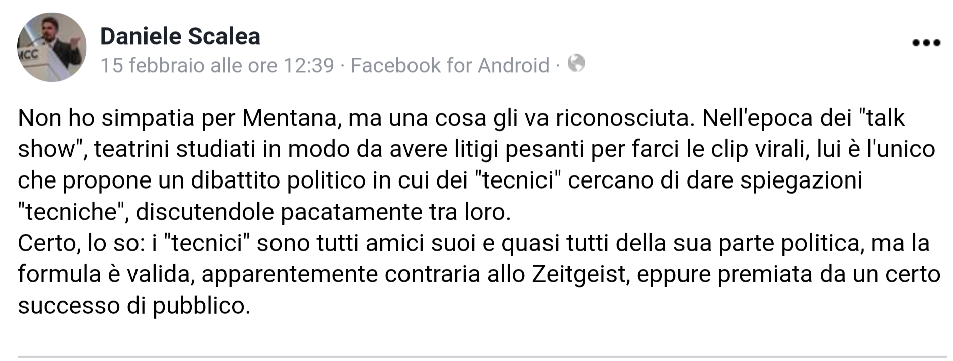 3. La destra che civetta con la sinistra: Si, lo so, Mentana è merda, però cesella certi stronzi che manco Fidia.