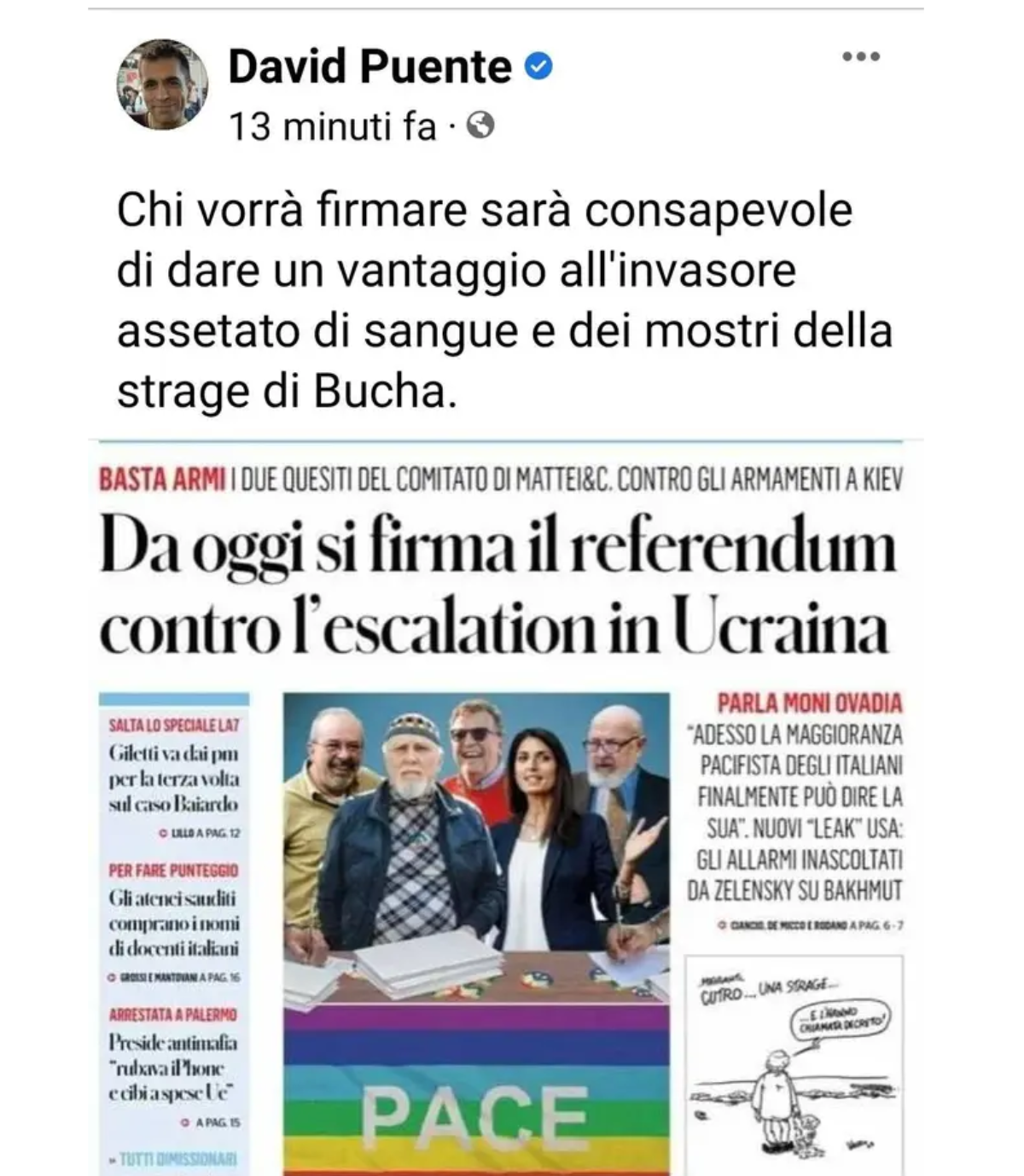 Ps. Si può criticare il movimento pacifista italiano; Puente l'ha fatto nel modo peggiore, preferendo la calunnia alle argomentazioni.